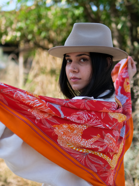 Vendor:KhatudesignsScarf Wild Cats RedRegular price Rs. 4,000.00Regular priceUnit price / per-