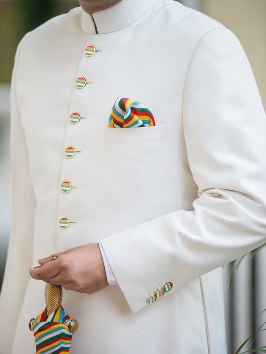 The smartly turned out men wear the square scarf and rectangular stole around their neck to keep themselves warm while enhancing their style statement with the coordinated scarves and stoles that go well with their cufflinks and buttons