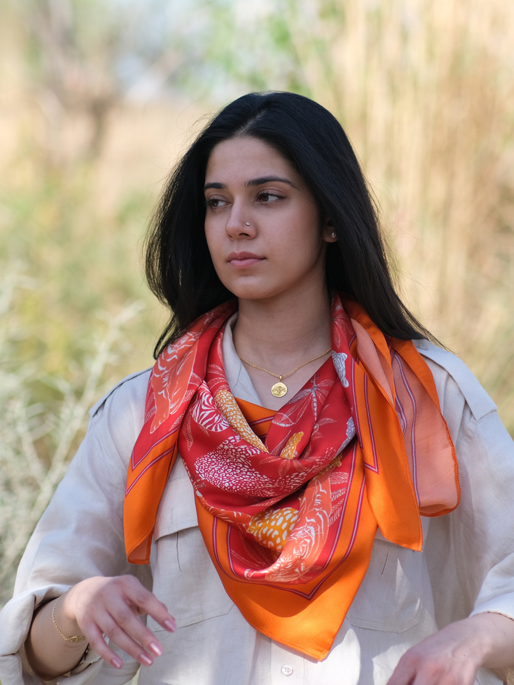Each collection at Khatu Designs has the important accessories- the rectangular stole and the square scarf made as unisex products fitting well in the wardrobes of both men and women for all occasions be it casual formal or special. Their soft satin silk material with beautiful designs make them collectors items for gifting too.